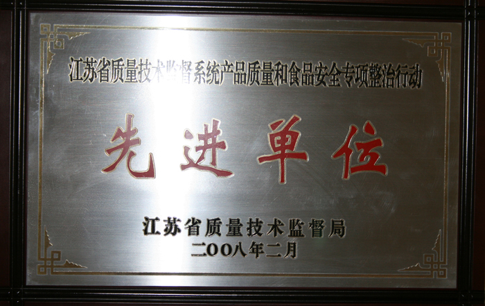 2008年江苏省质量技术监督系统产品质量和食品安全专项整治行动先进单位