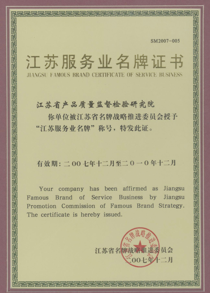 2007年江苏服务业名牌
