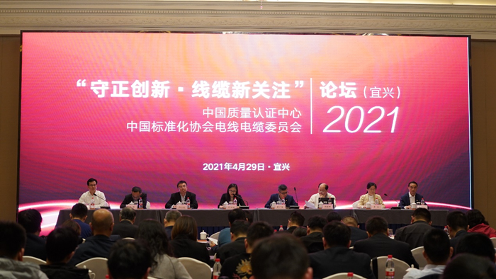 日前,“守正创新.线缆新关注”论坛在宜兴成功举办。本次论坛由中国标准化协会电线电缆委员会(以下简称“委员会”)与中国质量认证中心联合举办,省质检院国家电线电缆质检中心作为委员会秘书处承担单位,全程组织了会务工作。国家市场监督管理总局认证监管司、消费品认证处徐秋媛处长、中国质量认证中心曾广峰副主任、中国质量认证中心产品认证四部郑士泉处长、中国质量认证中心产品认证四部贾真副处长、委员会杨黎明主任委员等多位领导出席了会议。来自北京、上海、广东、重庆、河北、浙江、江苏等11个省市的17家检验机构以及90多家电线电缆制造企业、材料企业的220多名代表们参加了会议。