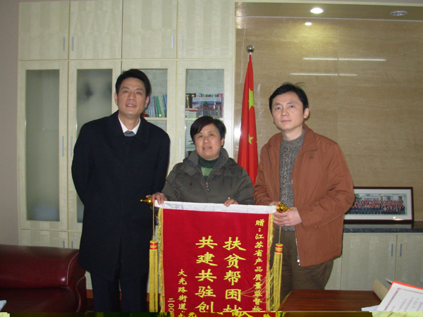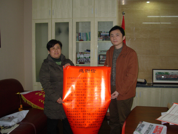 为帮助驻地困难群众度过一个安乐祥和的春节,在新年到来之际,我院积极投身南京市慈善总会开展的"慈善一日捐,济困送温暖"活动,踊跃捐款,奉献爱心,捐助资金2万元,为温暖驻地困难群众、共建和谐社会奉献了一份力量,光华园社区居委会专程送来锦旗和感谢信表示感谢!