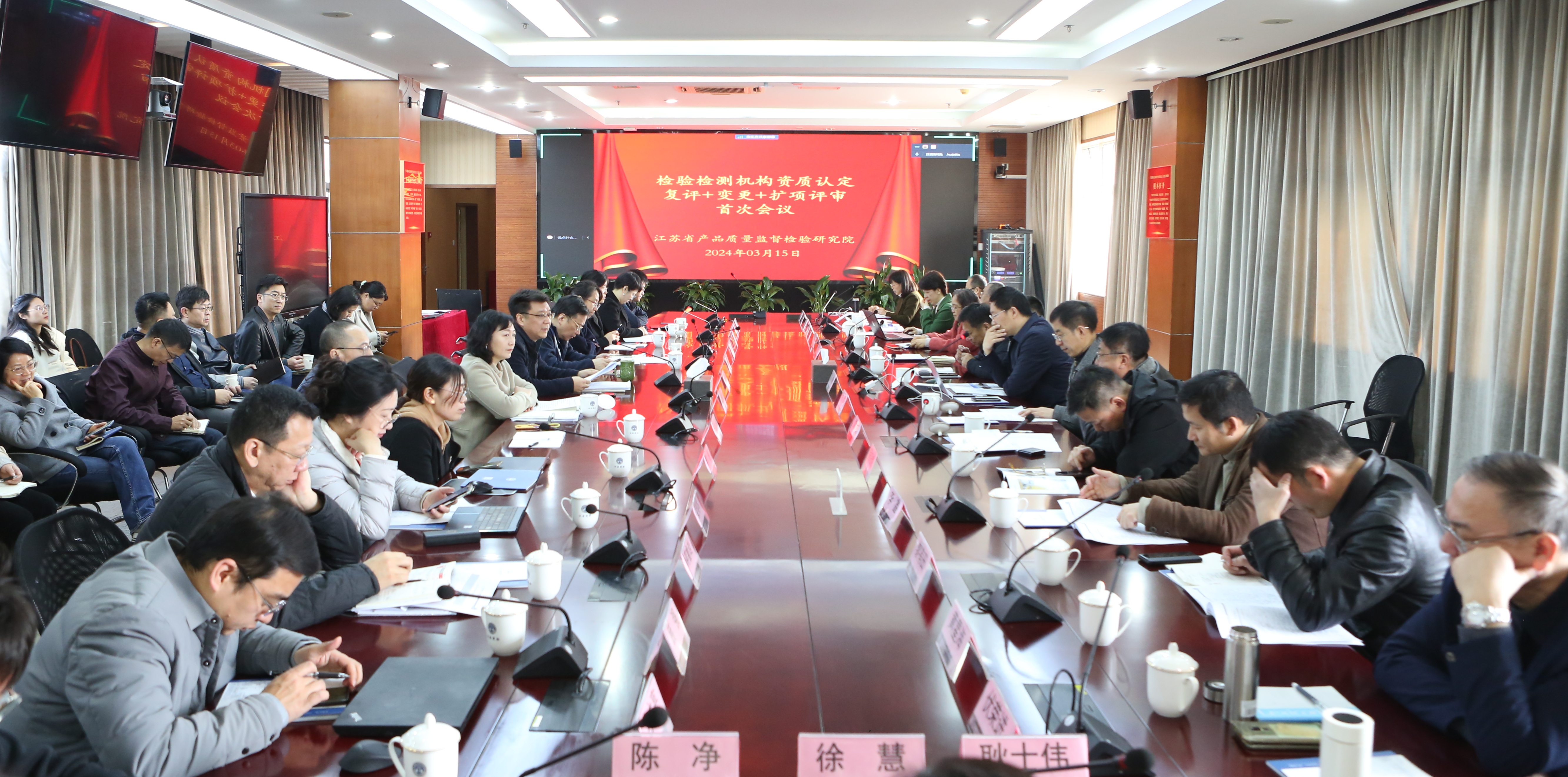 3月15日至17日,受江苏省市场监督管理局委派,由评审组长梁峙及30名评审员组成的评审组对江苏省质检院及其所属2个省中心进行资质认定换证复评审,以及江苏省应急装备检验检测中心初次评审。省质检院最高管理者邹洁院长、技术负责人高巍副院长、质量负责人张晓强副院长和所有院领导全程参与并陪同评审。