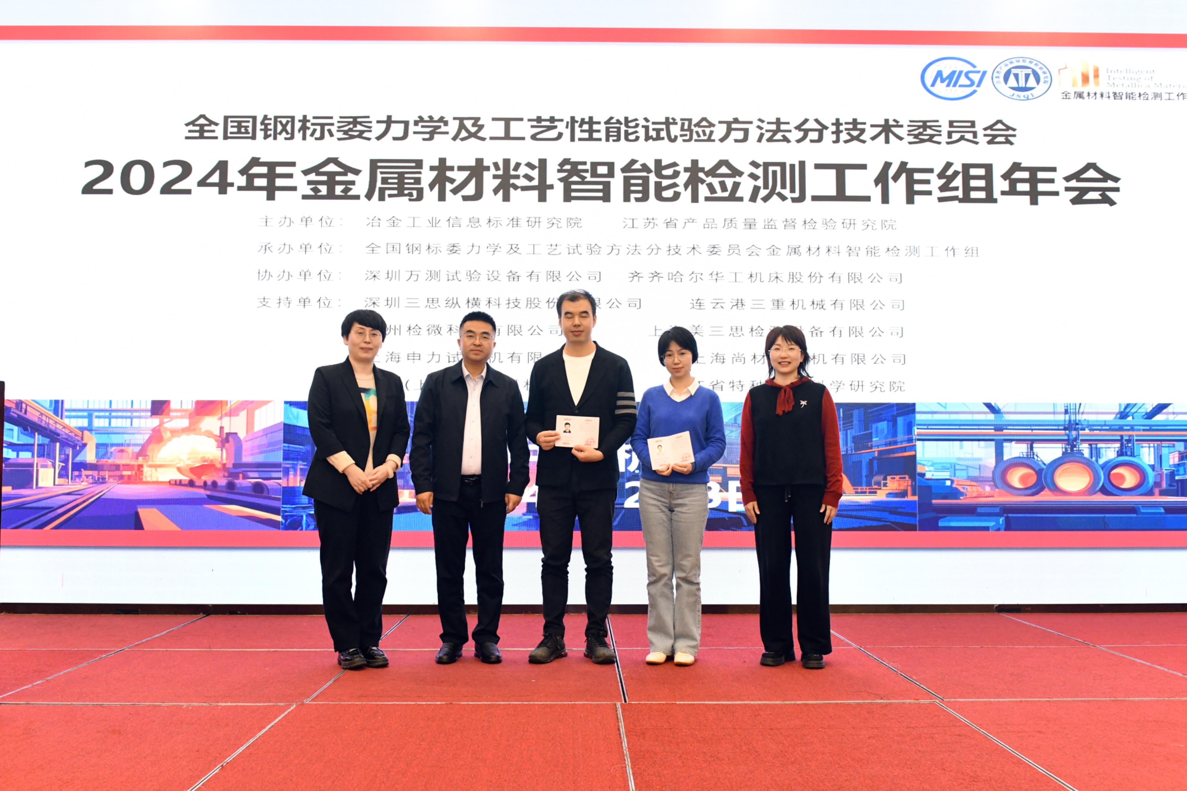全国钢标委力学及工艺性能试验方法分技术委员会金属材料智能检测工作组组长、江苏省产品质量监督检验研究院院长邹洁,全国钢标委秘书长、冶金工业信息标准研究院院长助理戴强,全国钢标委力学及工艺性能试验方法分技术委员会主任委员、宝山钢铁股份有限公司检化验中心主任徐卫星出席会议并发表致辞。江苏省产品质量监督检验研究院副院长陈玉明及冶金产品检测中心技术人员等参加了此次会议。