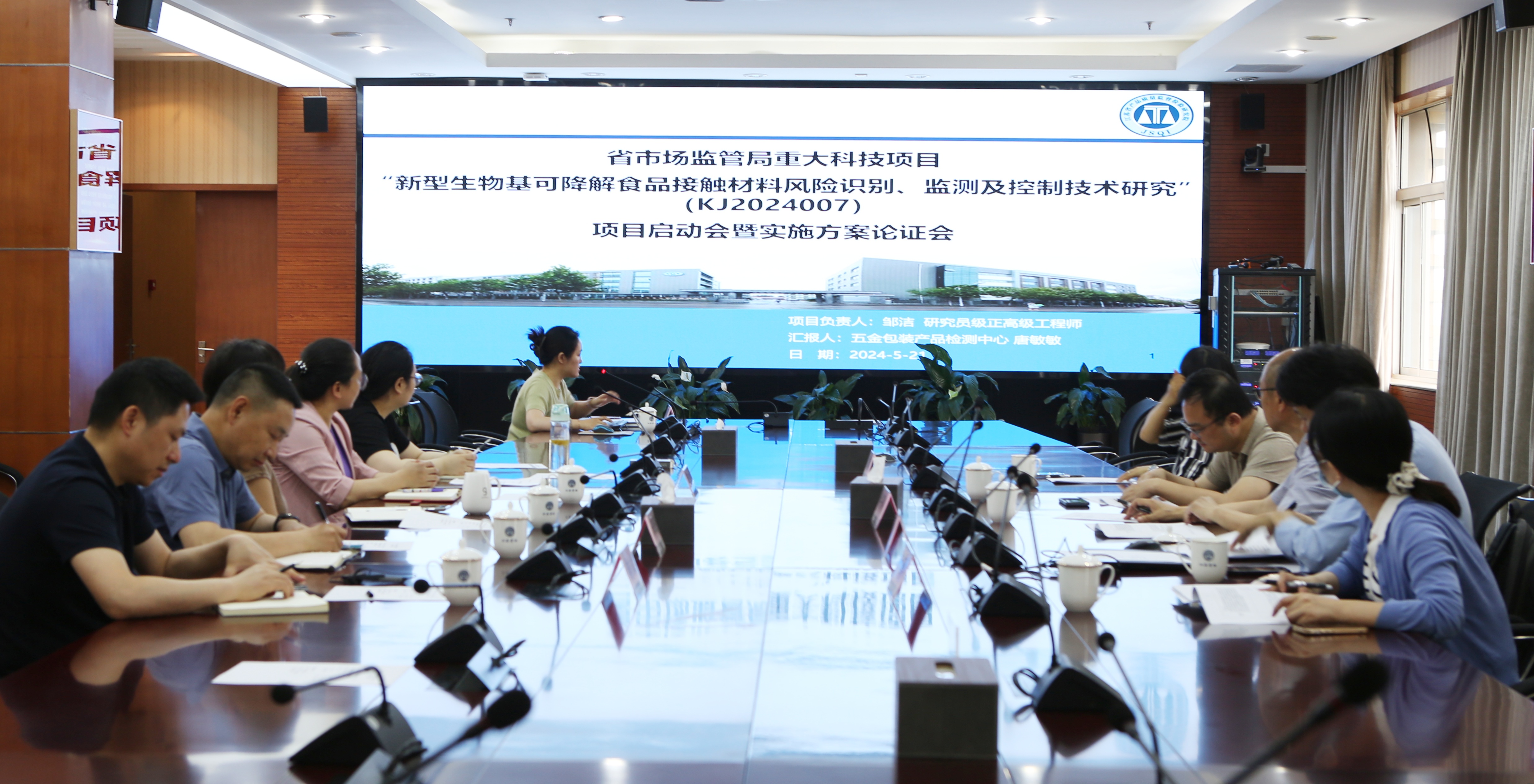 5月21日,省质检院召开省局重大科研项目《新型生物基可降解食品接触材料风险识别、监测及控制技术研究》(项目编号KJ2024007)开题报告会,邀请了南京大学分析科学研究所所长许丹科教授、东南大学公共卫生学院科研副院长王进教授,南京市质检院副院长张驰研究员级高工三位专家对项目进行指导,会议由省质检院总工程师、六级职员朱宇宏主持。会上,项目牵头单位省质检院五金中心、合作单位江南大学和南京农业大学的科研团队分别就项目课题研究方向和内容、研究基础和技术路线、创新意义及成果、项目资金预算及使用进行了阐述。