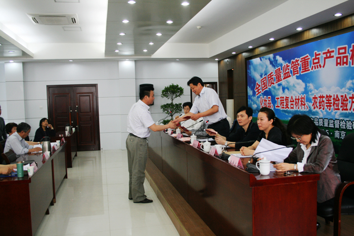经国家标准委批准,全国质量监管重点产品检验方法标准化委员会化妆品检验方法专业三组、工程复合材料专业工作组、农药检验方法专业工作组于2009年5月15日在我院正式成立。全国质量监管重点产品检验方法标准化技术委员会尹建军秘书长、省质监局张前副局长、标准化处蒋顺祥处长到会祝贺。会上向到会委员颁发了证书。