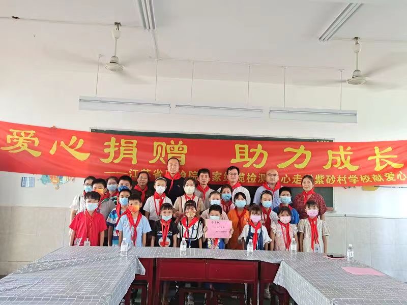 6月22日下午,江苏省质检院党委办公室和第五党支部(国家线缆中心)共同走进宜兴市丁蜀镇紫砂村学校,积极履行社会责任,情系民工孩子,举行“爱心捐赠
