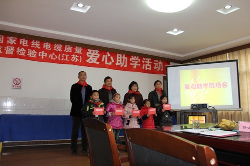 元月17日下午,国家电线电缆质检中心爱心助学活动在宜兴市范道实验小学举行。副院长、国家线缆中心主任水利民,院工会副主席陈柏泓,国家线缆中心专职副主任戴京生等领导以及校方领导和部分学生参加了活动。