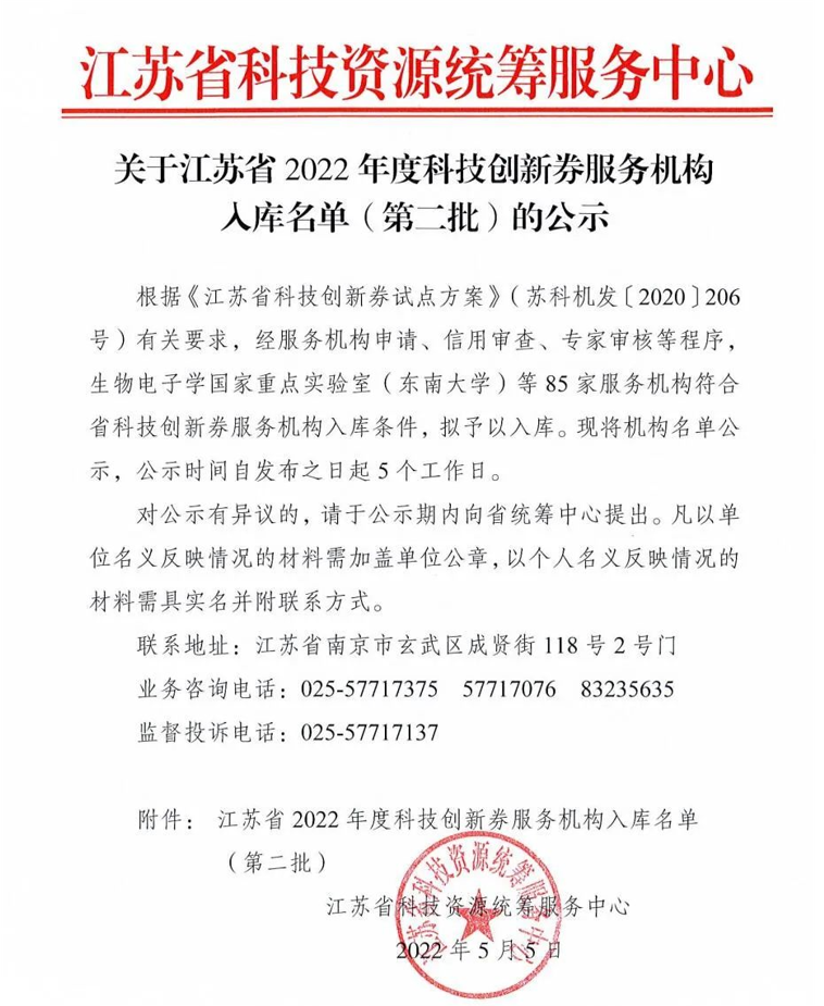 在省科技厅科技资源统筹服务中心组织的科技创新券服务机构甄选中,省质检院凭借优质的对外科技服务能力和业务基础,成功入围2022年度科技创新券服务机构。5月5日,第二批科技创新券服务机构入库名单正式公布。这标志着省质检院在科学仪器设施共享及科技创新检验检测服务领域迈上新台阶。