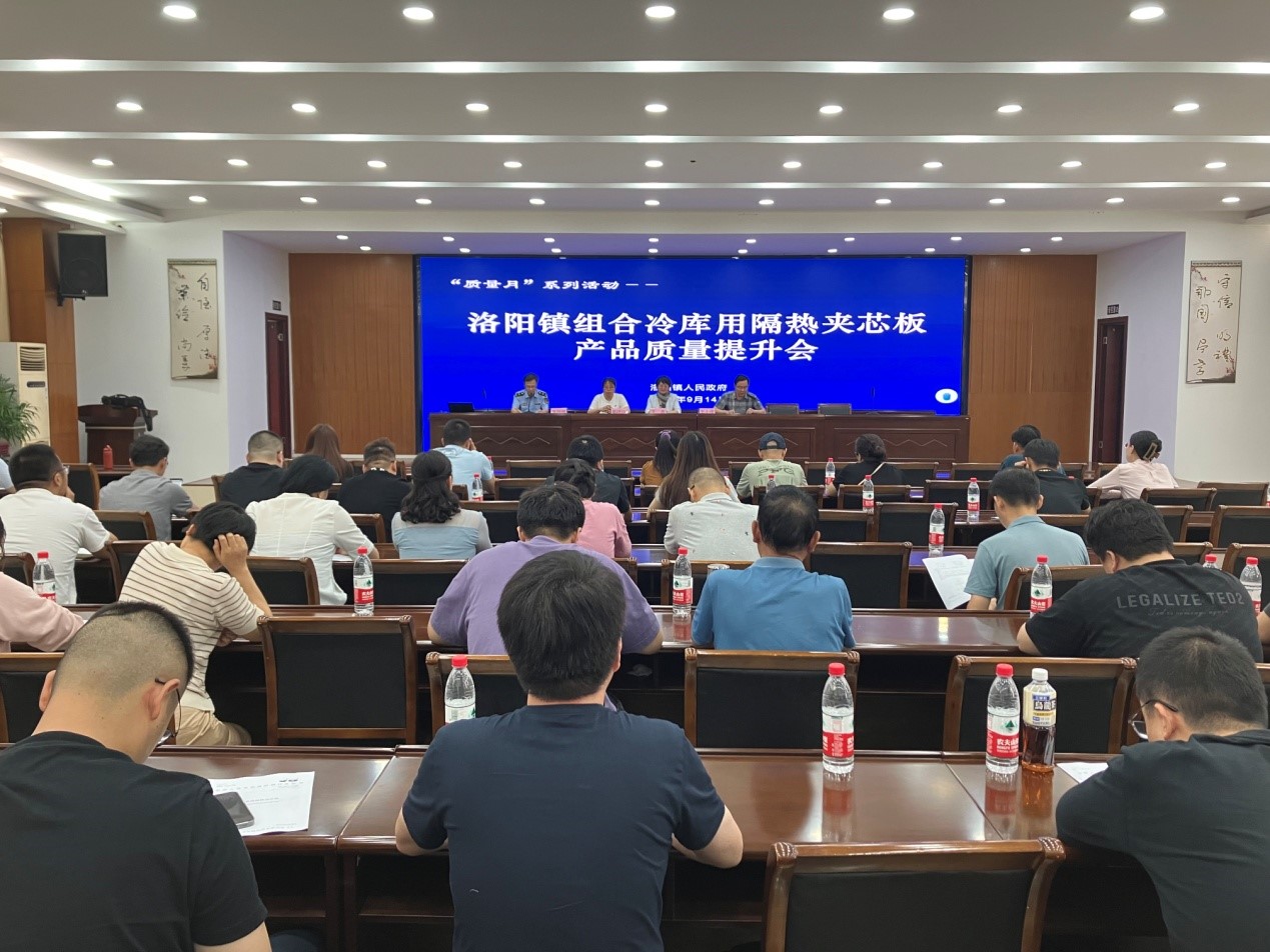 洛阳镇王小虎副镇长首先介绍了“质量月”的意义和主题,强调企业是质量强国的主力军,企业要增强质量意识,要积极地参与质量发展事业,重视质量、追求质量、崇尚质量,打造全要素新型质量管理企业,从而推动经济社会高质量发展。随后,王燕总工介绍了冷链用聚氨酯泡沫行业背景、生产工艺、发泡剂应用及生态环境监管及政策等内容。周晓玲副主任介绍了组合冷库用隔热夹芯板执行的产品标准、技术要求、检测技术及影响因素等内容,重点解答了企业在标准理解、质量管控、检验规则等方面的疑问和难点,并就今后如何协助企业不断提升组合冷库用隔热夹芯板产品质量进行了磋商。会后,和镇政府相关负责人、企业代表进行了进一步交流,讨论在加快降低碳排放步伐、落实“双碳”战略中如何结合省院先进的技术能力和企业的科技创新,带动行业升级改造,实现产品高质量发展,从而提升产业和经济的竞争力。
