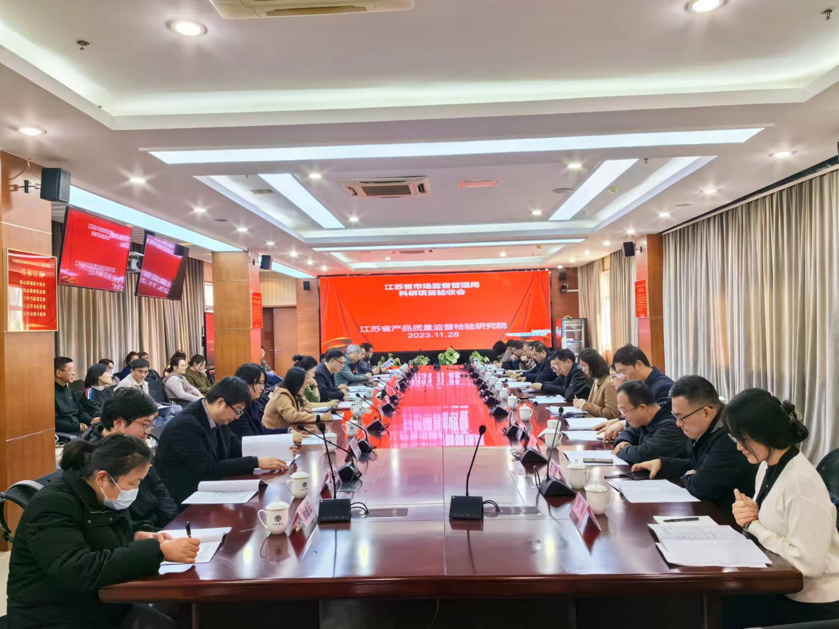 近日,江苏省市场监督管理局在省质检院主持召开“5G Sub-6GHz和毫米波频段测试关键技术研究”等17个科技项目集中验收会。省局科信处二级调研员魏怀勤、四级调研员张英、陈月莉,省质检院院长邹洁、副院长陈玉明及科研标准部、各项目承担部门项目负责人等四十余人参会。