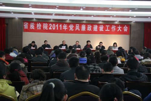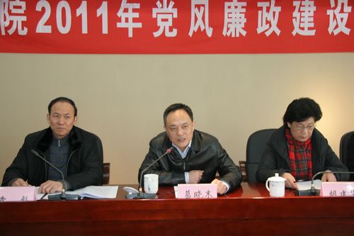院党委副书记、副院长胡建华同志首先代表院党委作了题为《围绕中心深化教育 强化监督 狠抓落实——努力开创党风廉政建设工作新局面》的党风廉政建设工作报告。报告对全院2010年党风廉政建设情况进行了回顾总结。2010年我院深入贯彻落实全省系统党风廉政建设会议精神,着力推进反腐倡廉制度建设,严格落实党风廉政建设责任制,切实加强廉洁自律教育,不断完善内控机制,将预防监督和业务工作相结合,取得了明显成效,促进了各项工作的和谐开展,主要体现在四个方面:一是明确责任, 认真落实上级党风廉政建设要求;二是多措并举,扎实推进惩防体系建设;三是教育引导,不断增强党员干部廉洁自律意识;四是注重管理,认真抓好作风行风建设。报告明确了2011年我院党风廉政建设的总体要求是:以科学发展观为指导,认真贯彻党的十七大和十七届四中、五中全会精神以及中央纪委六次全会、省纪委七次全会、全国质检系统和省局党风廉政建设工作会议精神,紧密结合质检工作实际,大力推进标本兼治、综合治理、惩防并举、注重预防的反腐倡廉体系建设,围绕中心,深化教育,强化监督,狠抓落实,全面提升党风廉政建设工作水平,为促进质检事业科学发展提供有力保证,以党风廉政建设和反腐败斗争的新成效迎接建党90周年。报告要求全院进一步增强责任感和紧迫感,认真履行职责,切实抓好反腐倡廉工作,做到“四个落实”:一是把党风廉政建设责任制落到实处;二是把廉政教育落到实处;三是把权力内控机制建设落到实处;四是把效能督察落到实处。