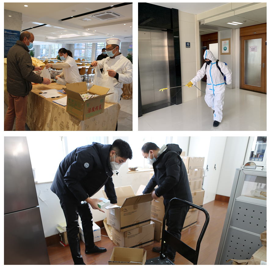 多点发力,加强防疫后勤保障。为筑牢疫情防控安全线,保障全院职工健康安全。疫情防控工作人员多方奔走联系,协调每周核酸检测,积极做好抗原、消毒液、医用酒精等防护物资的采购和发放。后勤餐饮人员严格监督食材质量,每天打包数百份盒饭,全力保障全院上下饮食安全。物业部门严格执行防疫消杀措施,每天安排工作人员对办公环境进行全域消杀,确保疫情防控不留死角,切实保障全院职工身体健康和生命安全。