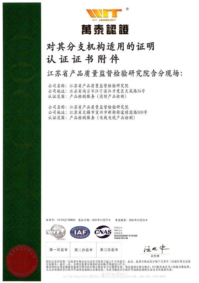 近日,省质检院首次获得万泰认证有限公司颁发的ISO9001质量管理体系认证证书,认证业务范围:产品检测服务,包含电线电缆产品、电器产品、日用消费品、五金包装类产品、农药危化品产品、消防产品、冶金产品、化学建材产品的检测,这标志着省质检院开启了体系认证的新征程。