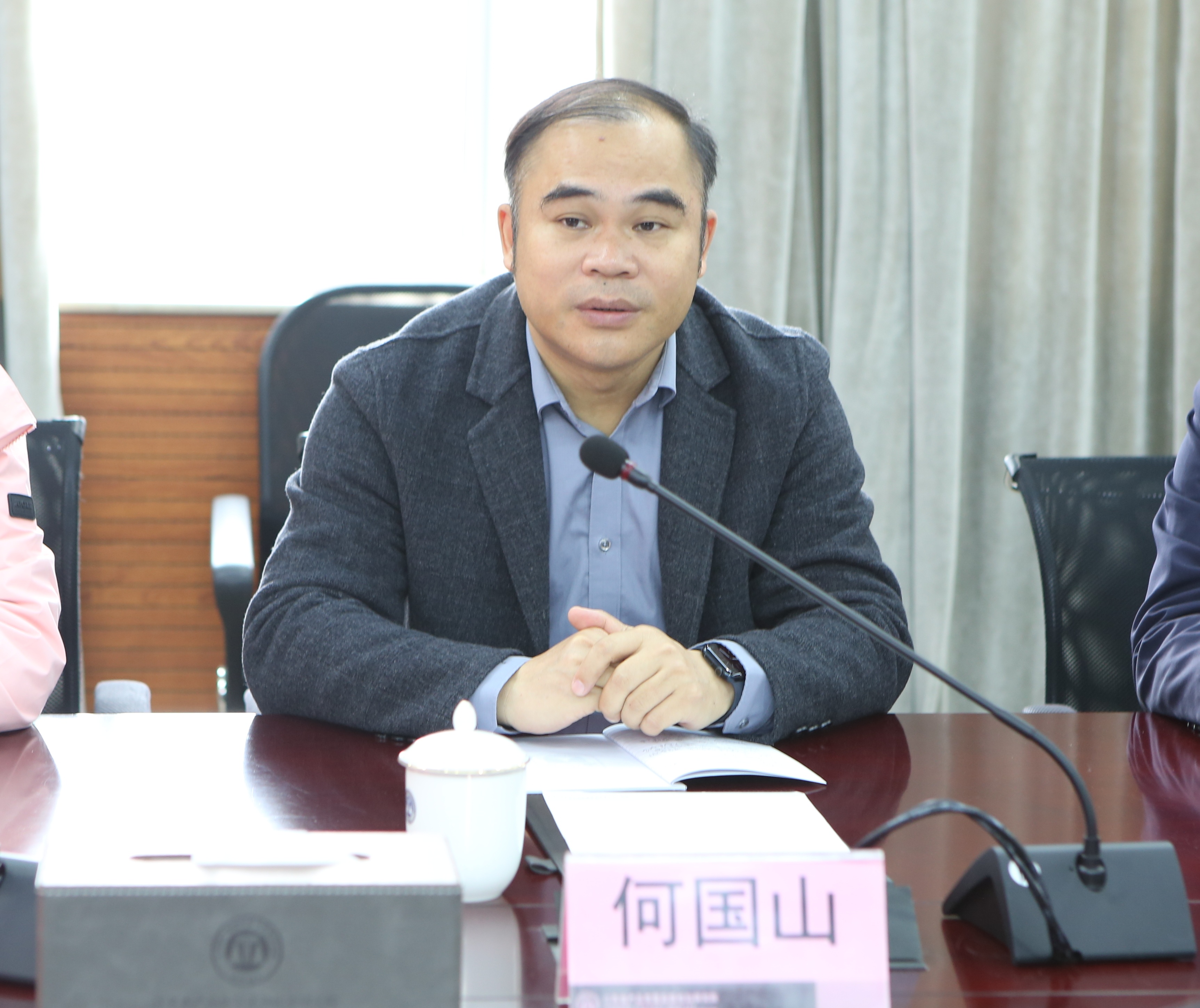 何国山副院长一行听取了张晓强副院长对省质检院基本概况、人员配置、实验室建设、检验检测能力等情况的介绍。双方在产业链优化升级、服务新质生产力发展、国家质检中心建设、人才引进及培养等方面展开了交流。