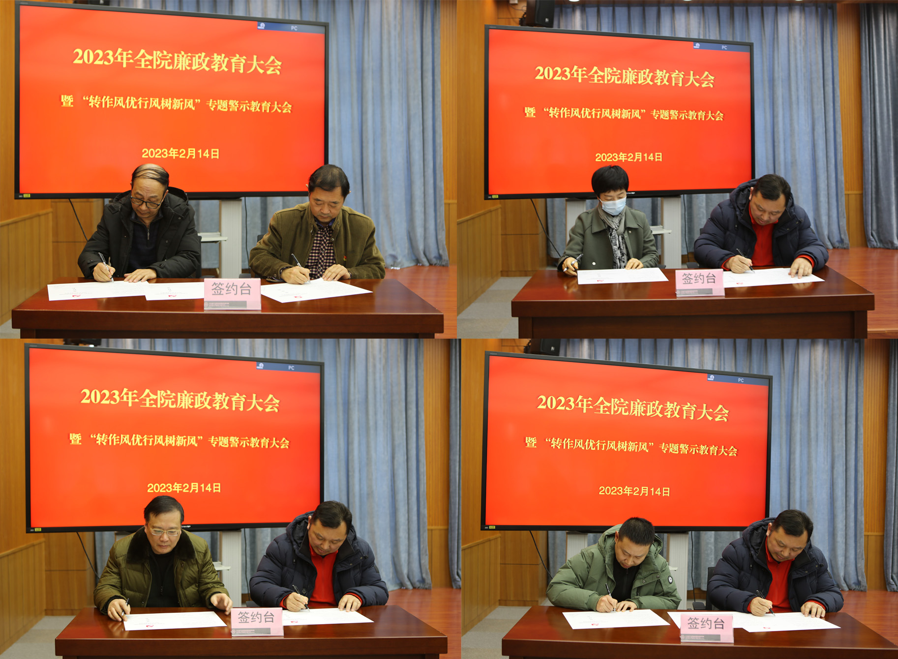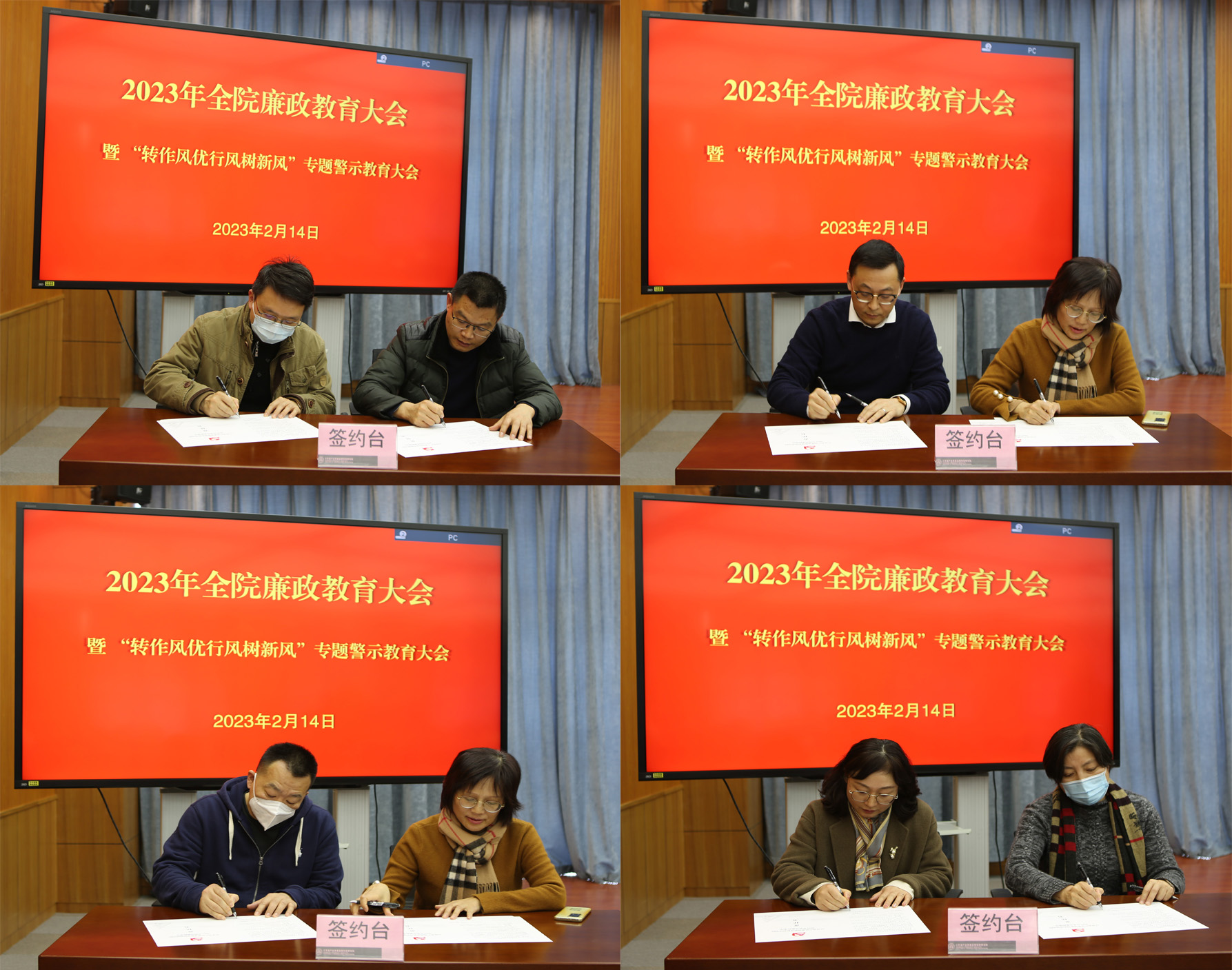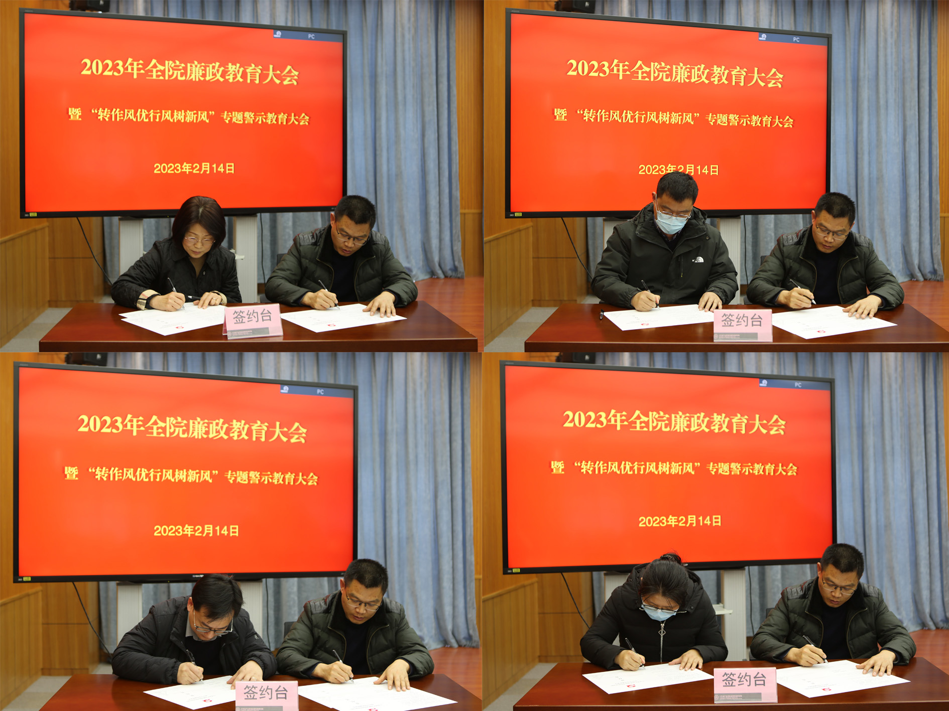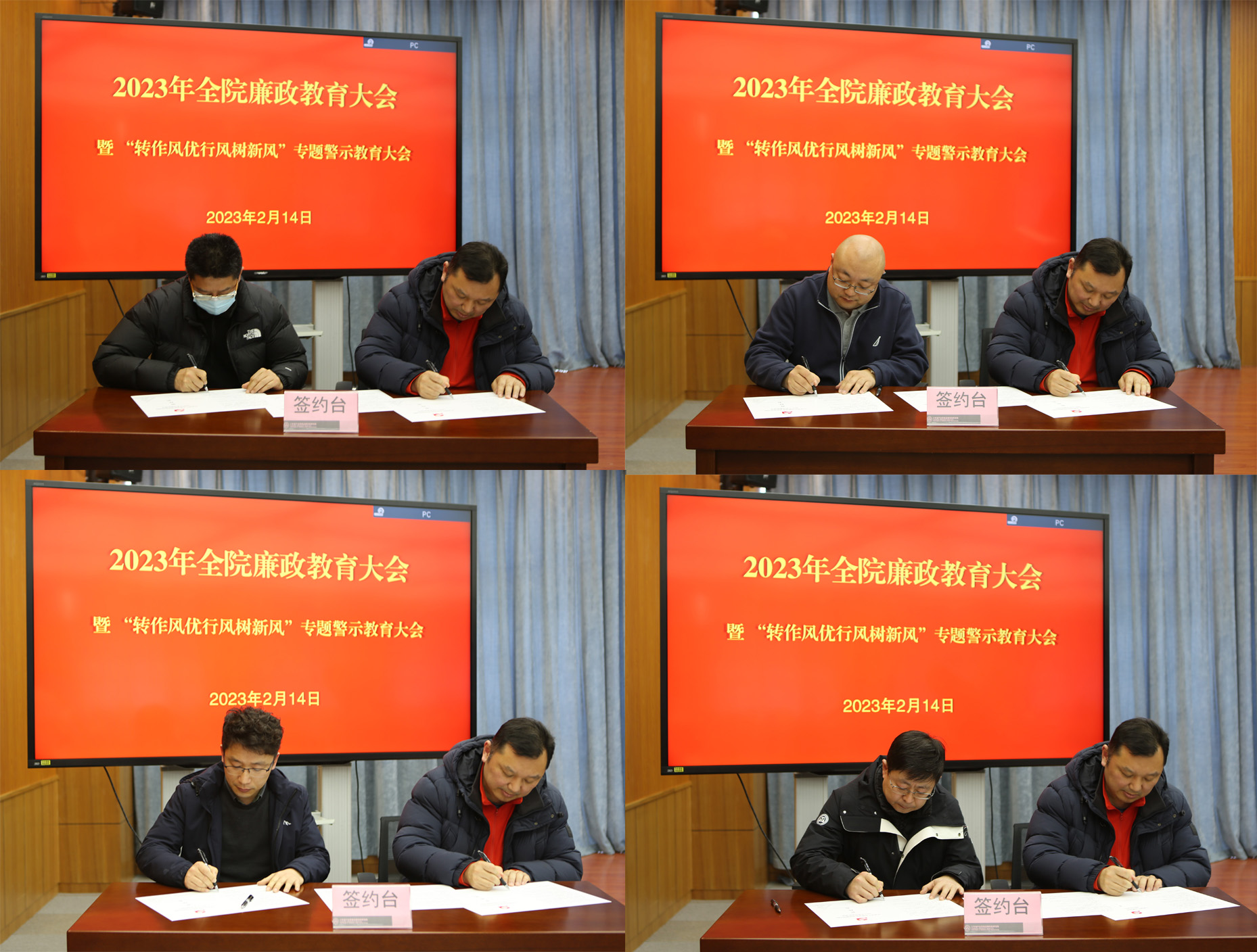 会上,院纪委组织全体人员集中学习了《2023年党风廉政建设责任书》重点内容,组织开展了《2023年党风廉政建设责任书》签订仪式。