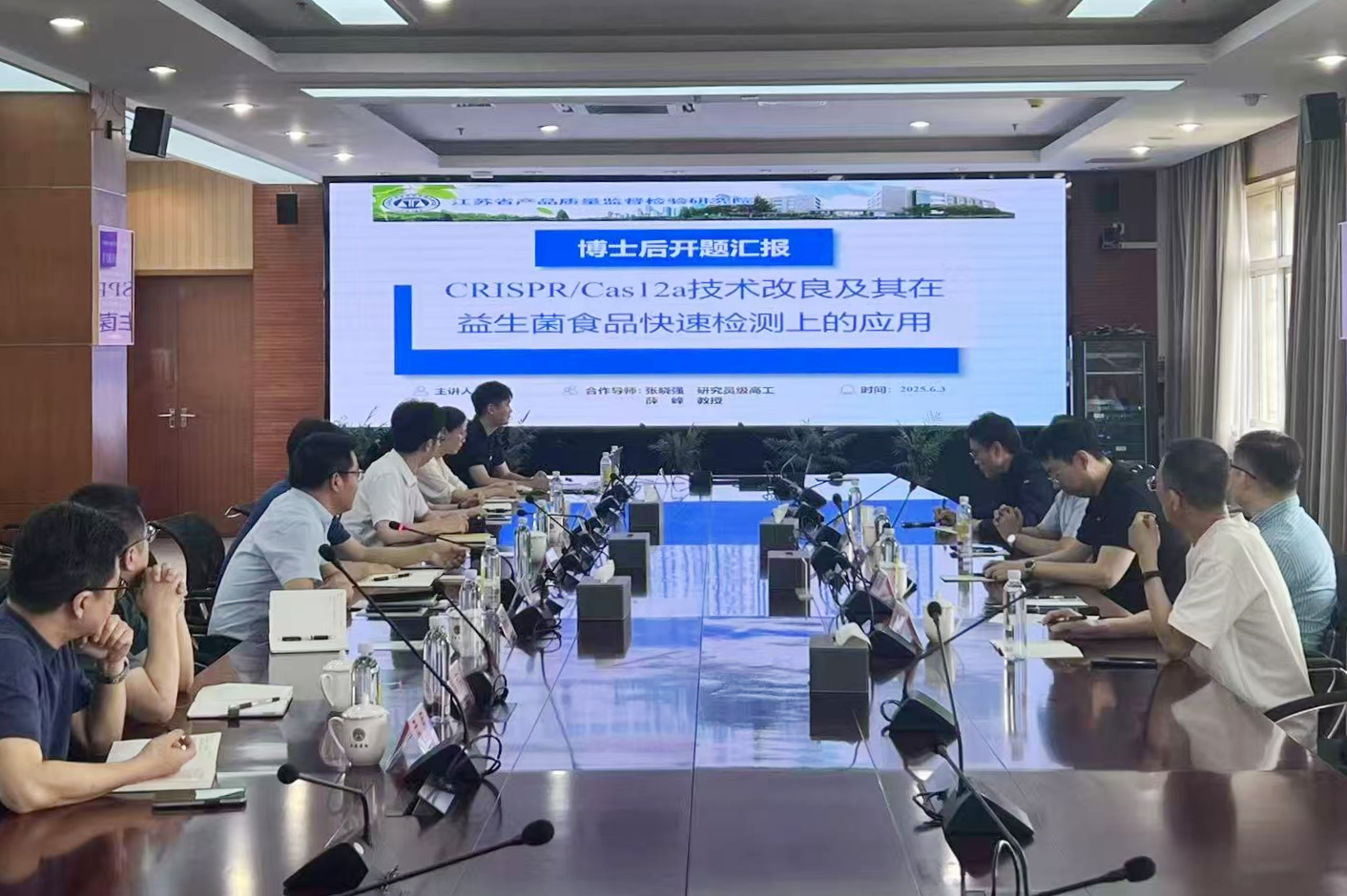 会上,张晓强副院长首先介绍了省质检院博士后工作站建设概况,强调其对高层次人才培养和科研创新的支撑作用。陈玉明副院长则重点介绍了院科技工作整体布局与进展。随后,会议进入核心议程:廖凯博士就其研究课题《CRISPR/Cas12a技术改良及其在益生菌食品快速检测上的应用》,从研究背景、课题设计、研究进展、预期成果及进度安排等方面进行了系统汇报。评审专家组围绕课题的科学性、创新性、可行性及应用价值,对研究内容、技术路线、方法选择等进行了深入评议和质询,并提出了针对性的优化建议。专家们一致鼓励廖凯博士聚焦关键问题,深化研究,尽早突破技术瓶颈,实现预期目标。